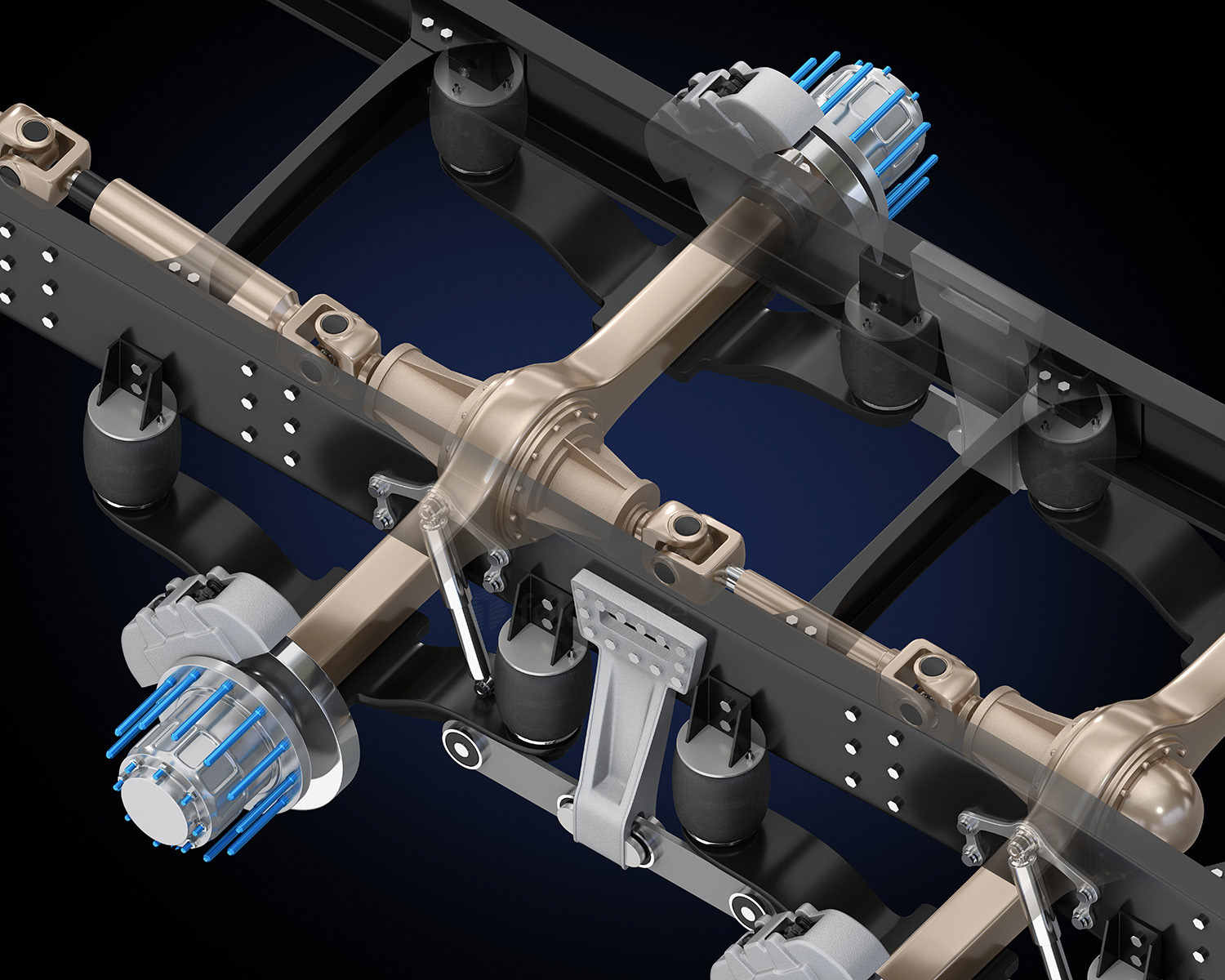 Technical illustration of truck air suspension system.